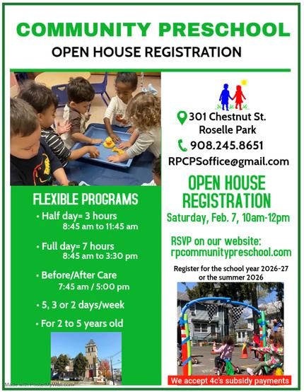 sponsored by the Community United Methodist Church of Roselle Park. Educational activities, social experiences and